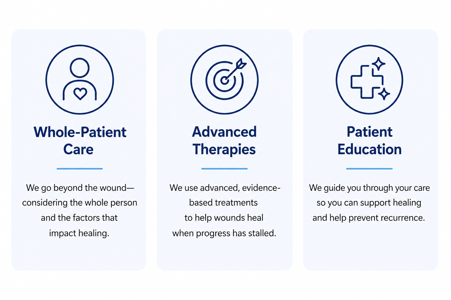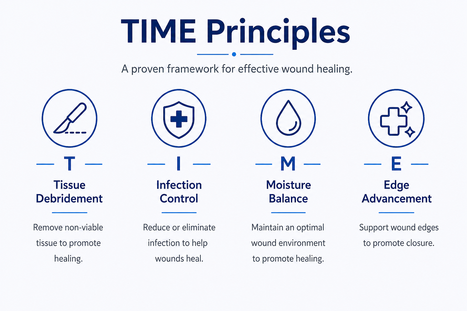 Advanced wound care is provided by specially trained medical experts who perform thorough assessments and aggressive treatments of chronic and complicated non-healing wounds. We use the T.I.M.E principles to treat our patients, and then treatment is customized to the ulcer type.